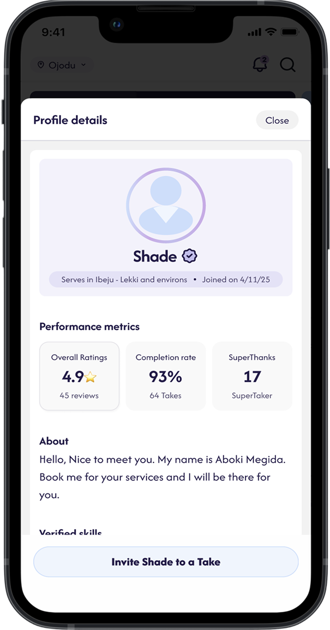 In Nigeria, finding reliable help can be stressful. Takers App makes it easy and safe to get things done, with escrow payments, verified profiles, and a clear, step-by-step process that keeps everyone accountable.