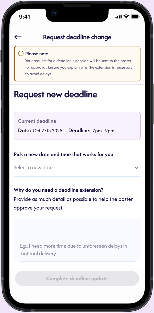 Every state has reminders, timers, and status updates, so no one’s left guessing. I also designed possibility to request and extend deadlines.